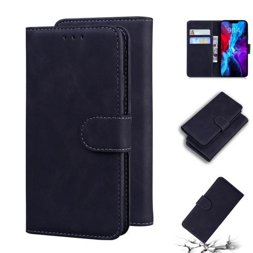Funda de Cuero con Tapa para iPhone 12 Skin Feel Pure Color (Negro)