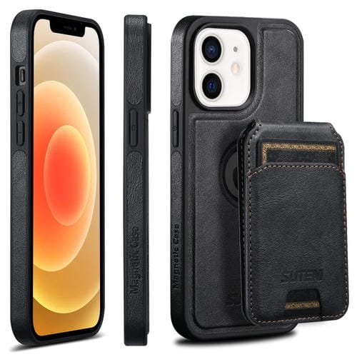 Funda para Teléfono Suteni M2 para iPhone 12 con Magsafe Bolsa para Tarjeta Horizontal (Negro)