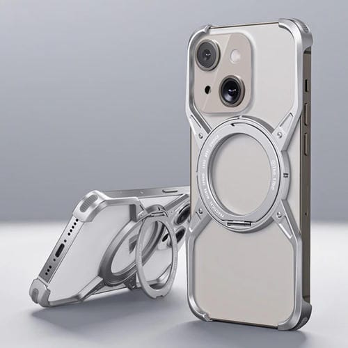 Estuche para Teléfono iPhone 13/14/15 Giratorio 360 Grados sin Marco Aleación de Aluminio (Plateado)