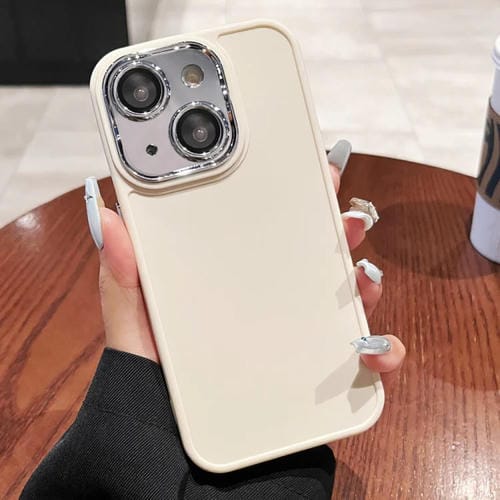 Caja de Teléfono para iPhone 13 con Marco de Lente Galvanizada y Película de Lente (Blanco)