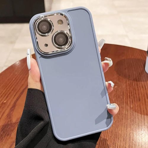 Caja de Teléfono para iPhone 13 con Marco de Lente Galvanizada y Película de Lente (Gris Lavanda)