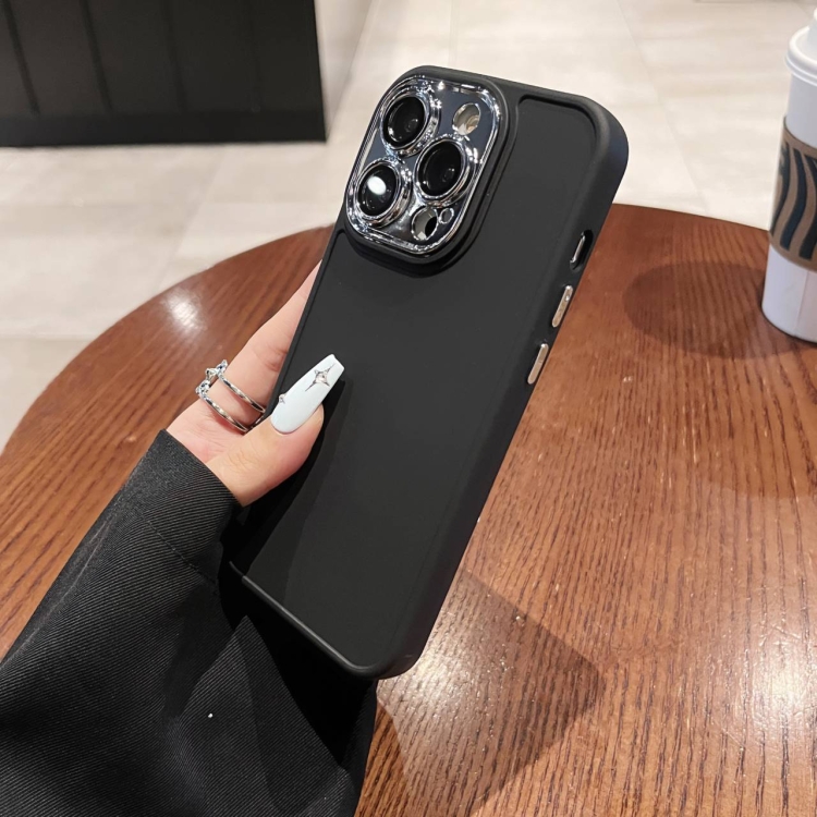 Caja de Teléfono para iPhone 13 con Marco de Lente Galvanizada y Película de Lente (Negro)