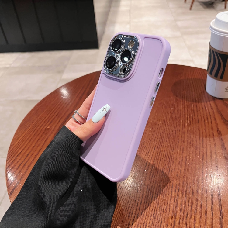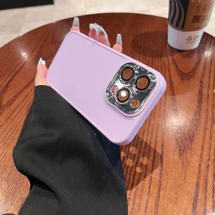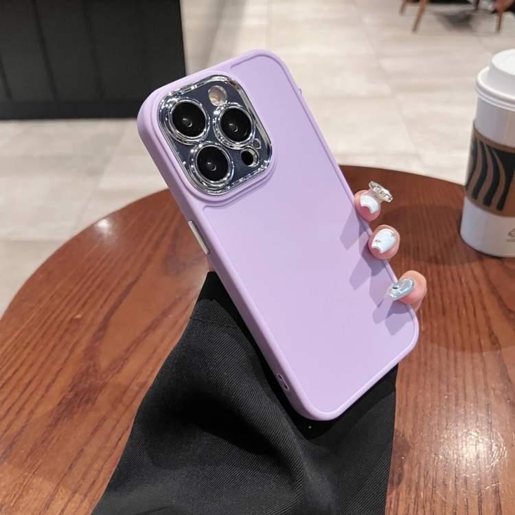 Caja de teléfono para iPhone 13 con marco de Lente galvanizada y Película de Lente (Púrpura Claro)