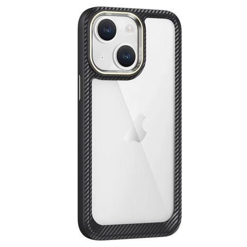 Caja de Teléfono para iPhone 13 con Panel Posterior Transparente de Fibra de Carbono (Negro + Transparente)
