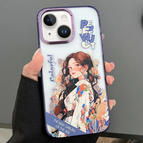Funda para iPhone 13 Dibujos Animados Coloridos Grabados Niña de Las Flores