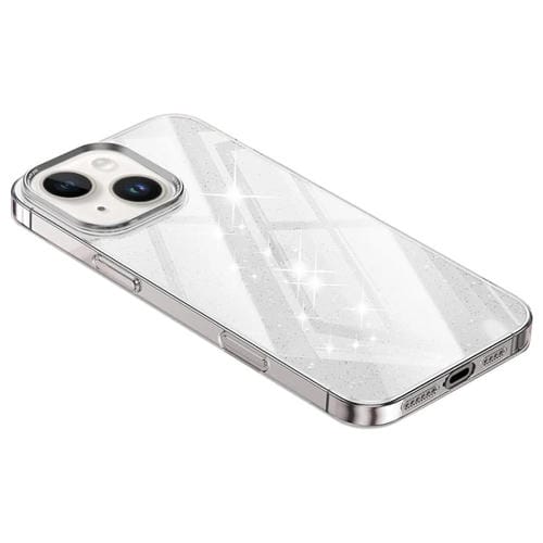 Caja de teléfono híbrida iPhone 13 con purpurina galvanizada para PC (Transparente)