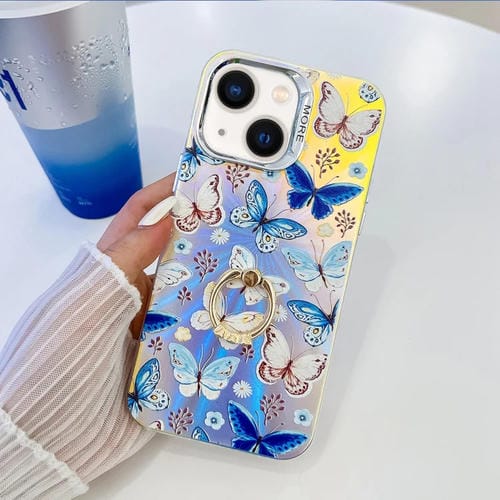 Caja de teléfono para iPhone 13 con soporte de anillo de mariposa láser de galvanoplastia