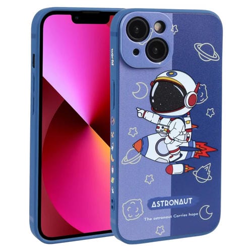 Funda de Teléfono TPU para iPhone 13 Contraste de Color Patrón de Astronauta (Azul)