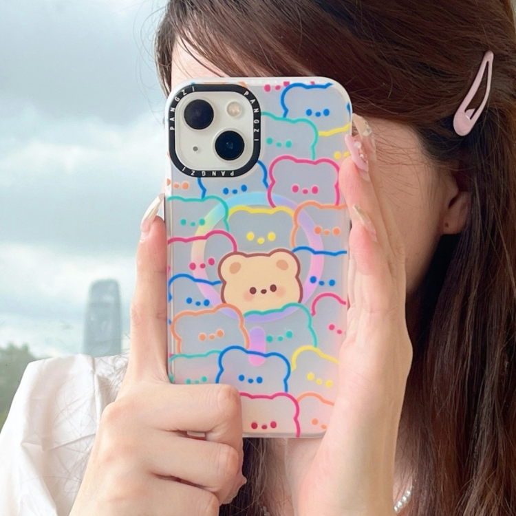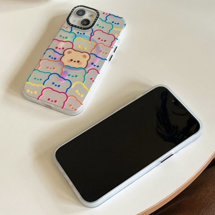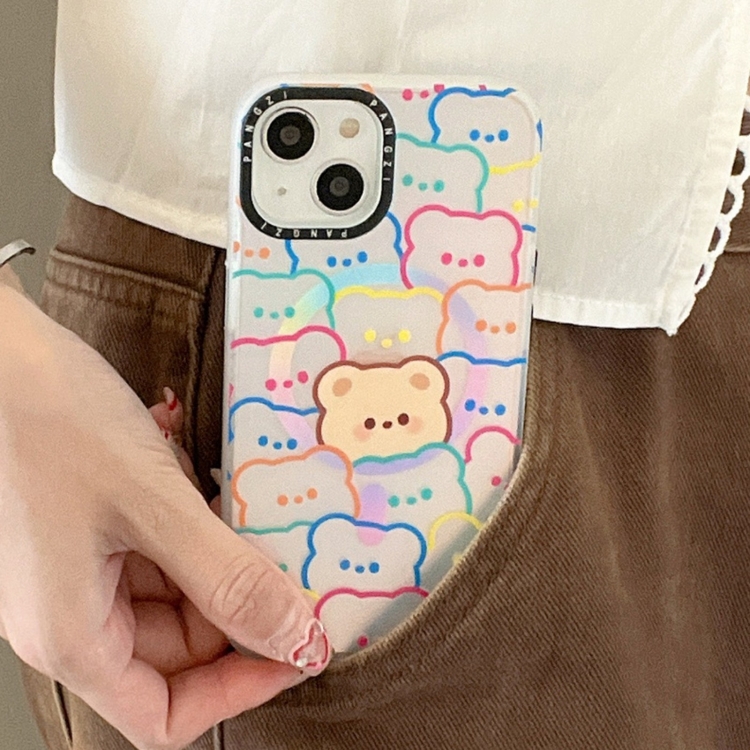 Estuche para Teléfono iPhone 13 IMD Magsafe Esmerilado Doble Capa (Osos Apilables)