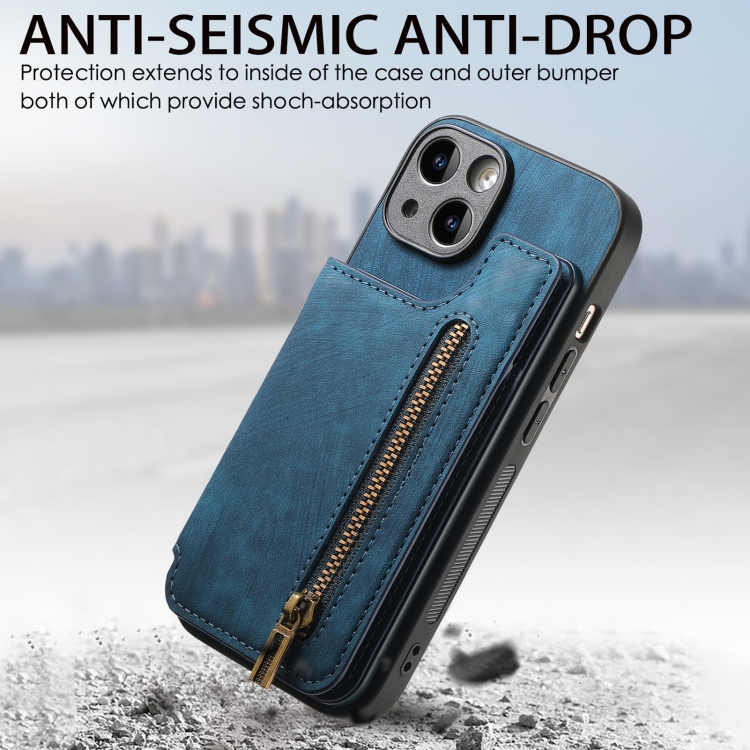 Funda para iPhone 13 de Cuero Retro con Cremallera y Billetera (Azul)