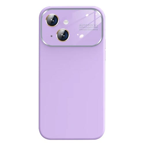 Funda de teléfono iPhone 13 silicona líquida ventana vidrio grande (Púrpura Claro)
