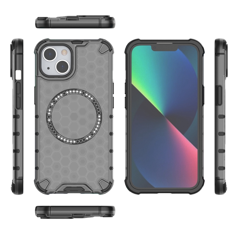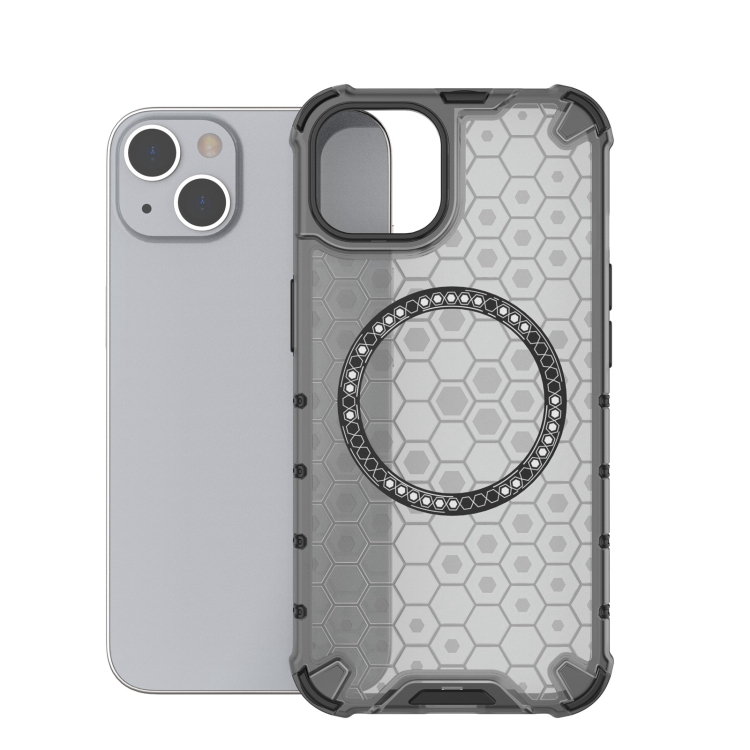 Funda para Teléfono iPhone 13 a Prueba de Golpes con Anillo Magnético en Forma de Panal (Negro)