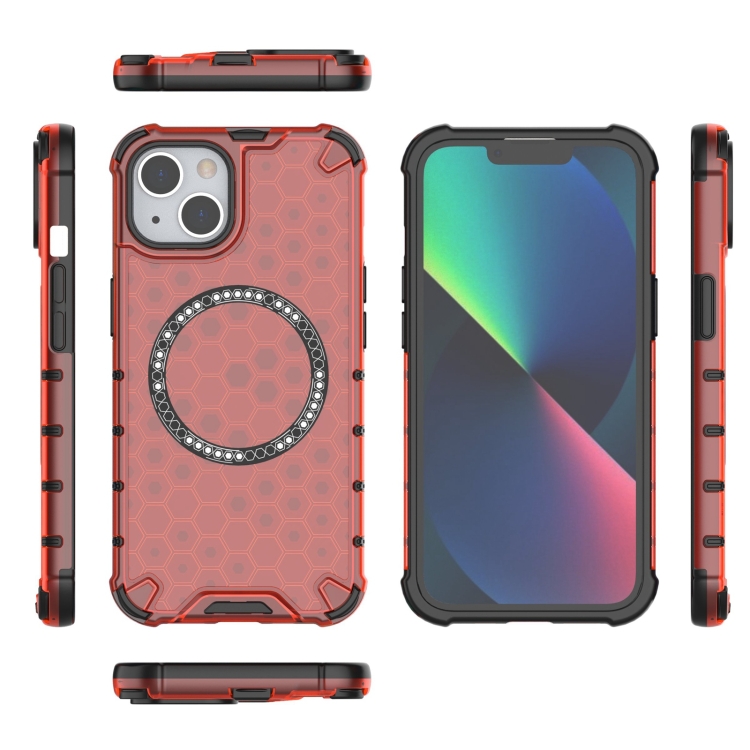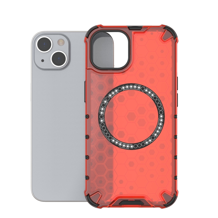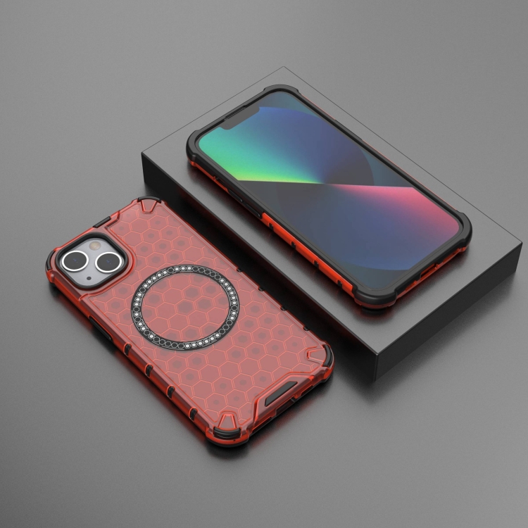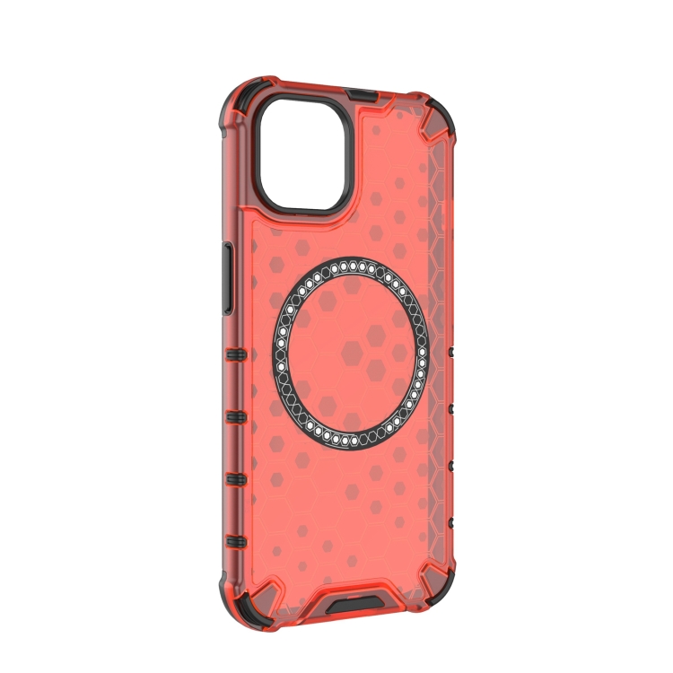 Funda para Teléfono iPhone 13 con Anillo Magnético en Forma de Panal a Prueba de Golpes (Rojo)