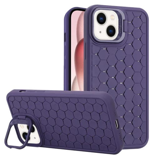 Funda para Teléfono TPU iPhone 13 con Soporte para Lente Radiante de Panal (Púrpura)