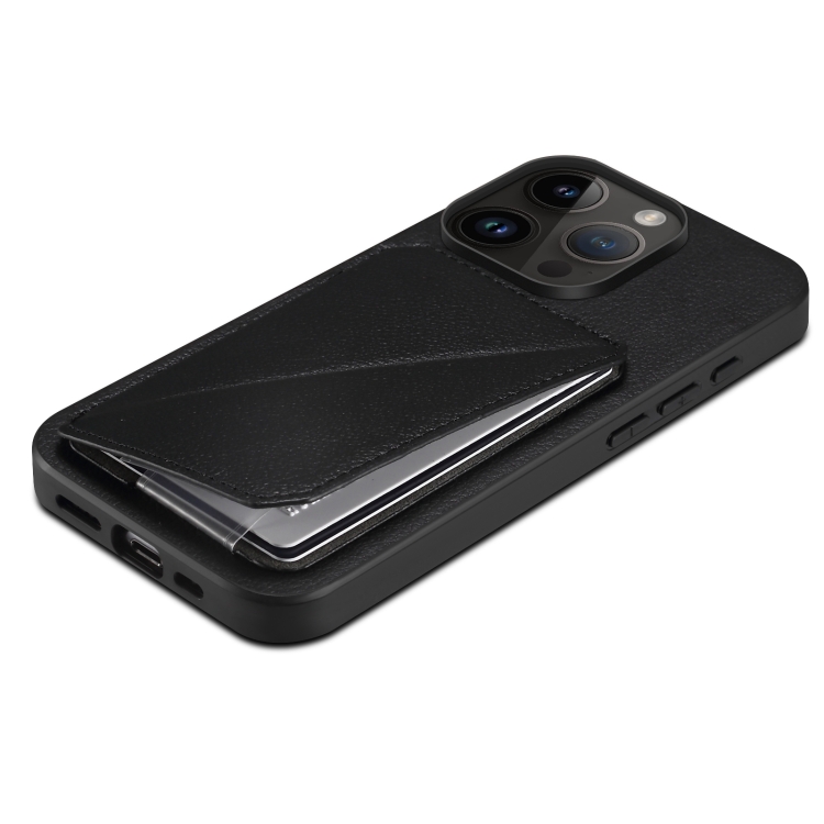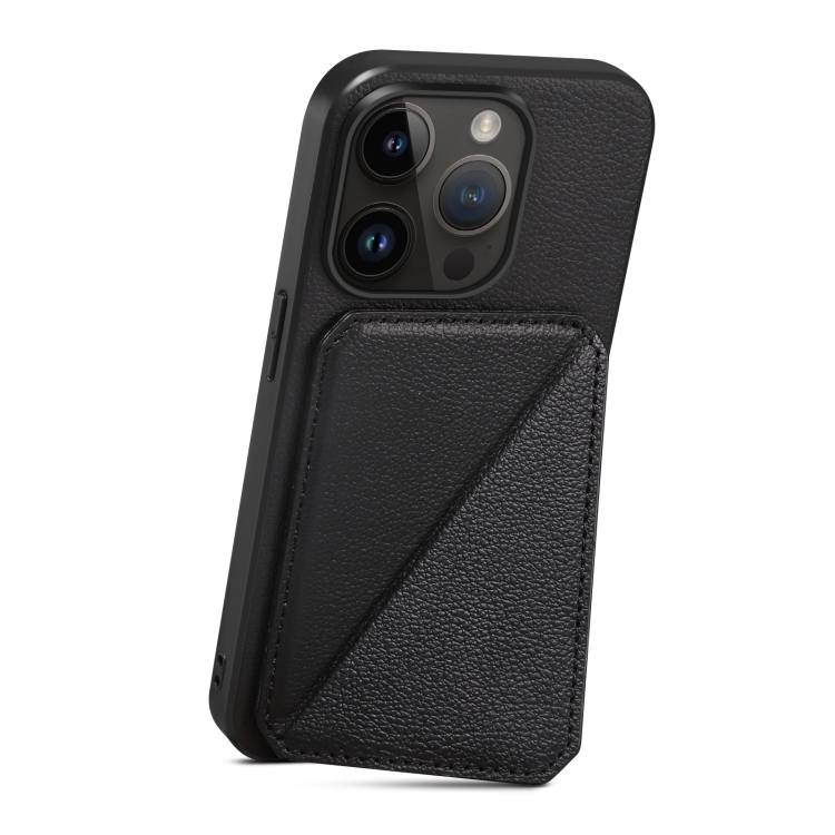 Funda Trasera para iPhone 13 de Piel de Becerro de Imitación con Soporte (Negro)