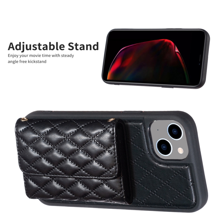 Funda para iPhone 13 Horizontal Wallet Rhombic Leather Case (Negro)