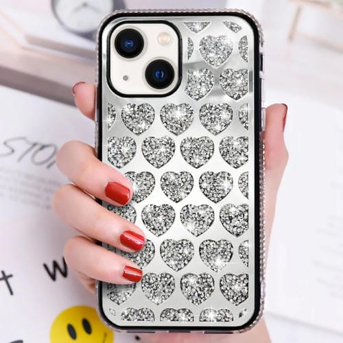 Funda TPU para iPhone 13 Love Hearts Diamond Mirror (Plata)