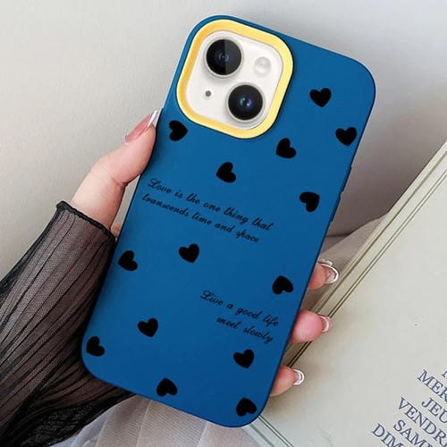 Funda híbrida para teléfono iPhone 13 Love Hearts PC TPU (Azul Real)