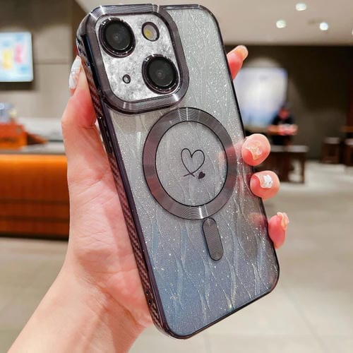 Estuche para Teléfono iPhone 13 Loves Leaves Magsafe TPU Brillo Degradado Fibra de Carbono (Negro)