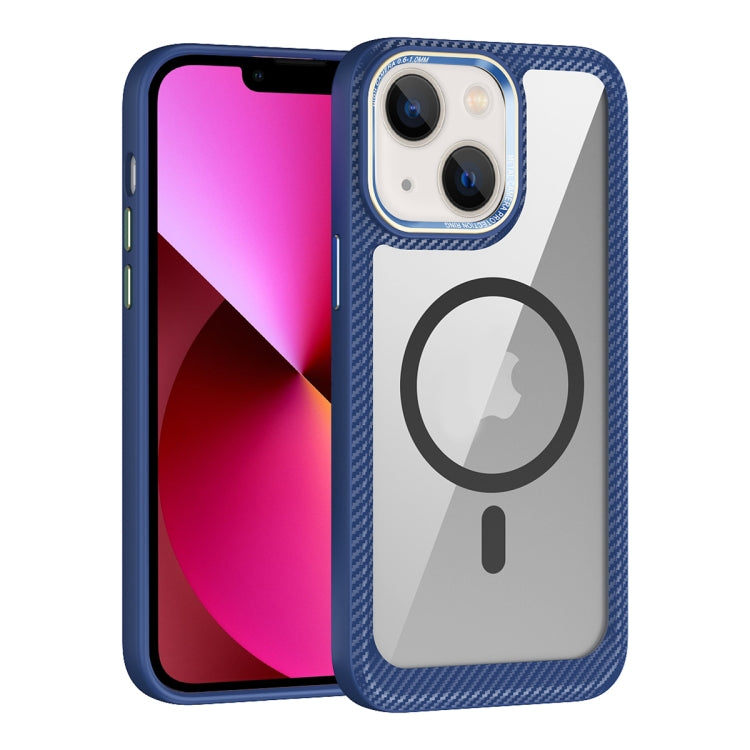 For iPhone 13 MagSafe Carbon Fiber Transparent Back Panel Phone Case (Blue)