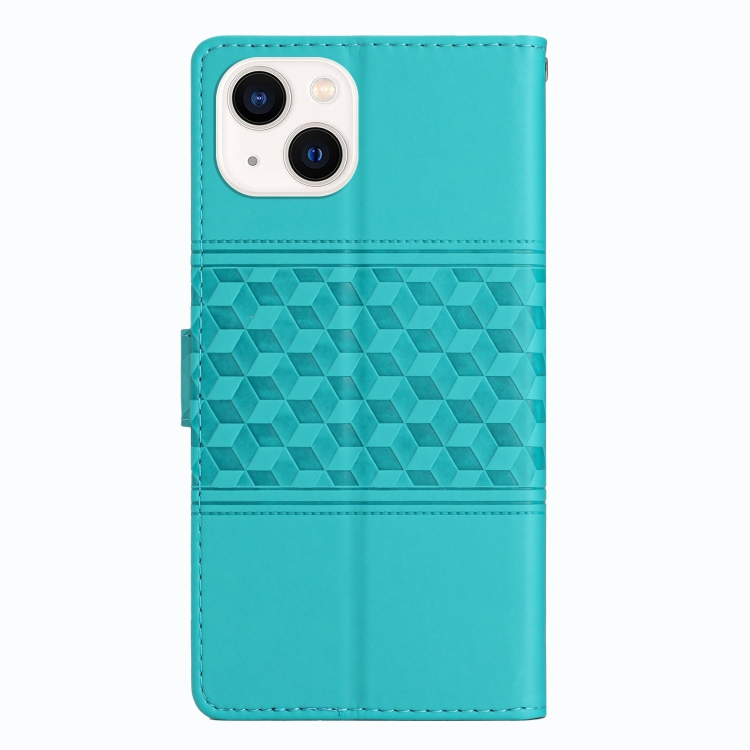 Caja de teléfono para iPhone 13 Mini cuero con sensación de piel en relieve con cordón (Azul)