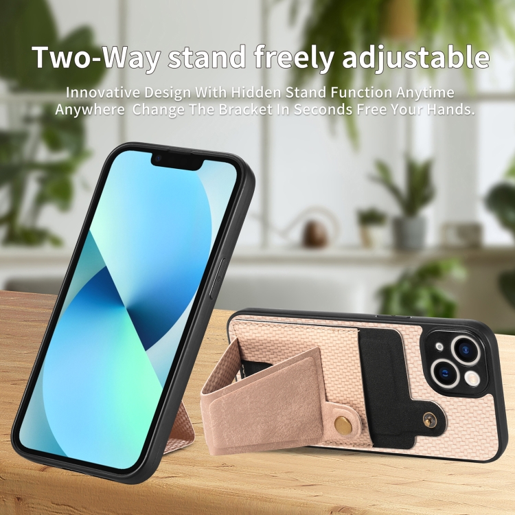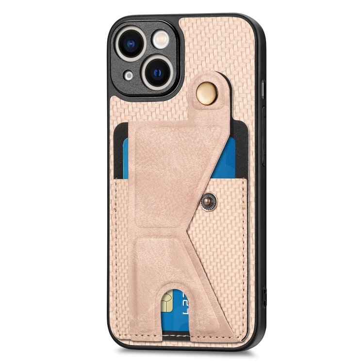 Funda Cartera para iPhone 13 Mini Fibra de Carbono Flip Card con Soporte en Forma de K (Caqui)