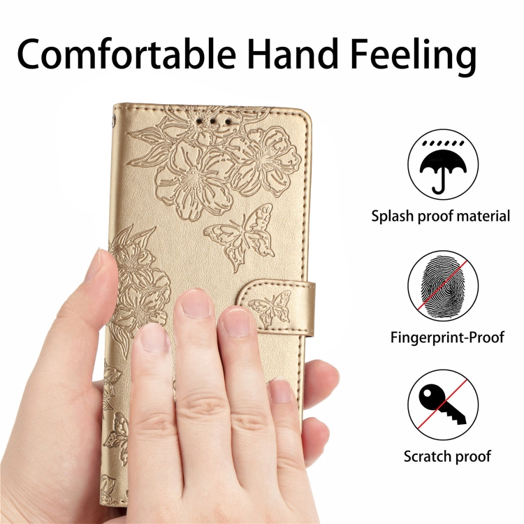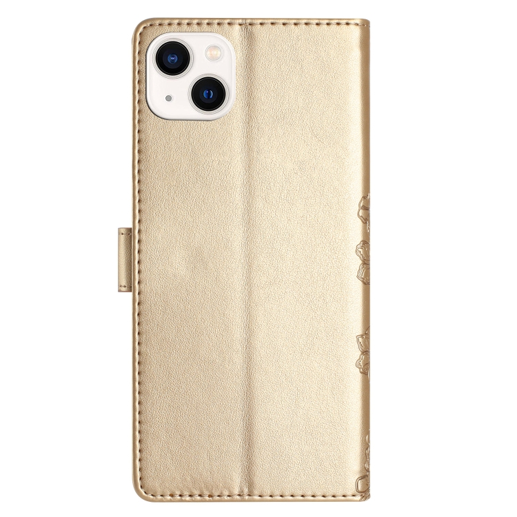 For iPhone 13 mini Cherry Blossom Butterfly Skin Feel Embossed PU Phone Case(Gold)