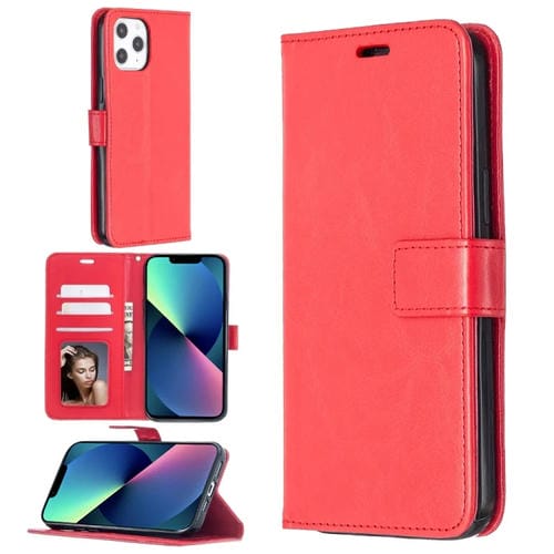 Funda de Cuero Crazy Horse para iPhone 13 Mini con Tapa Horizontal, Soporte, Ranuras para Tarjetas, Billetera y Marco de Fotos (Rojo)