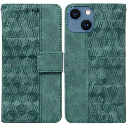 Estuche de teléfono iPhone 13 Mini cuero con relieve geométrico (Verde)