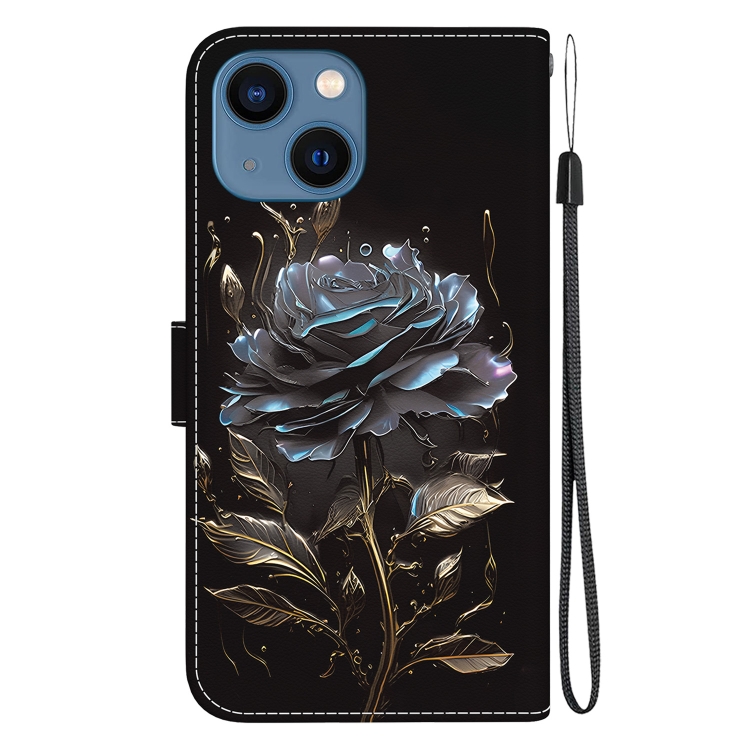 For iPhone 13 mini Crystal Texture Colored Drawing Leather Phone Case (Black Rose)