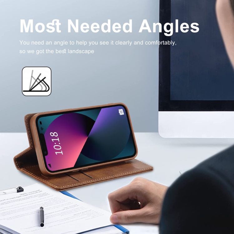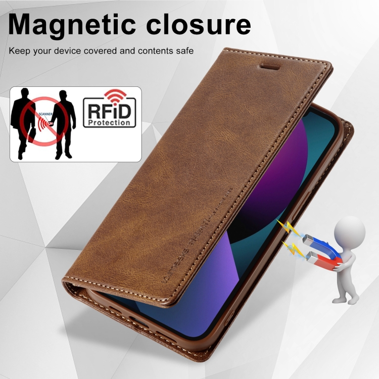 Funda para iPhone 13 Mini Lc.Imeeke Cuero Antirrobo Rfid (Marrón)