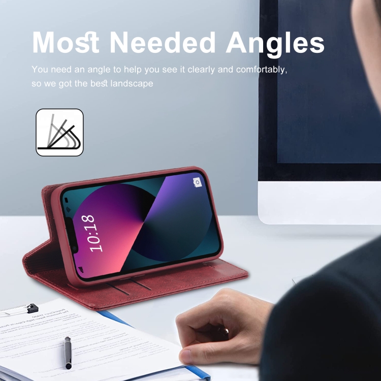 Funda para iPhone 13 Mini Lc.Imeeke Rfid Cuero Antirrobo (Rojo)