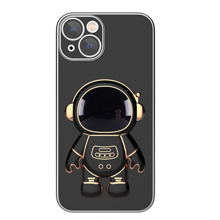 Funda para teléfono iPhone 13 Mini Plating Astronaut Holder con Película de Lente (Negro)