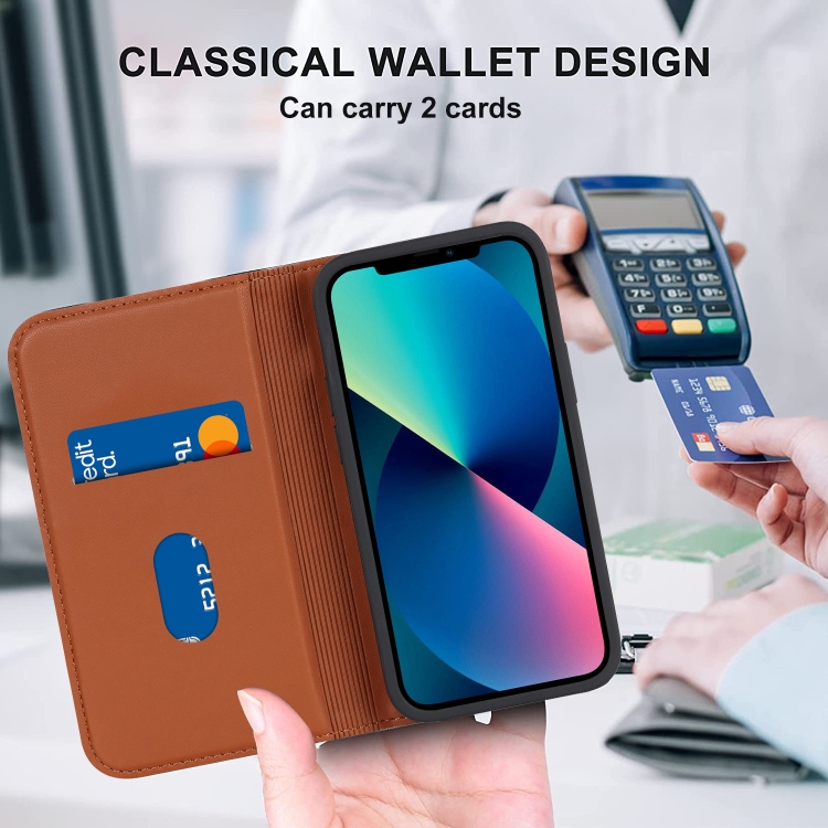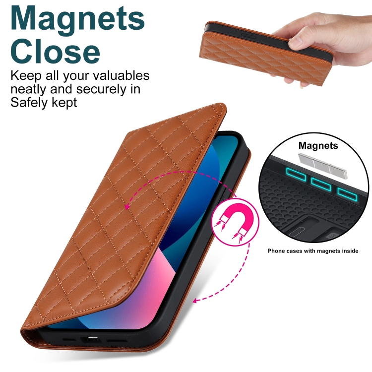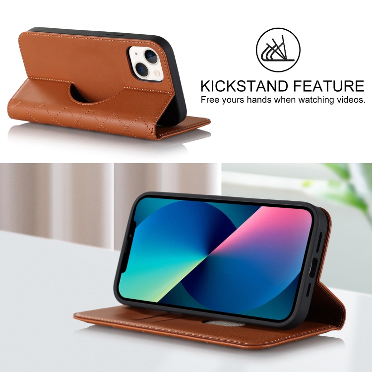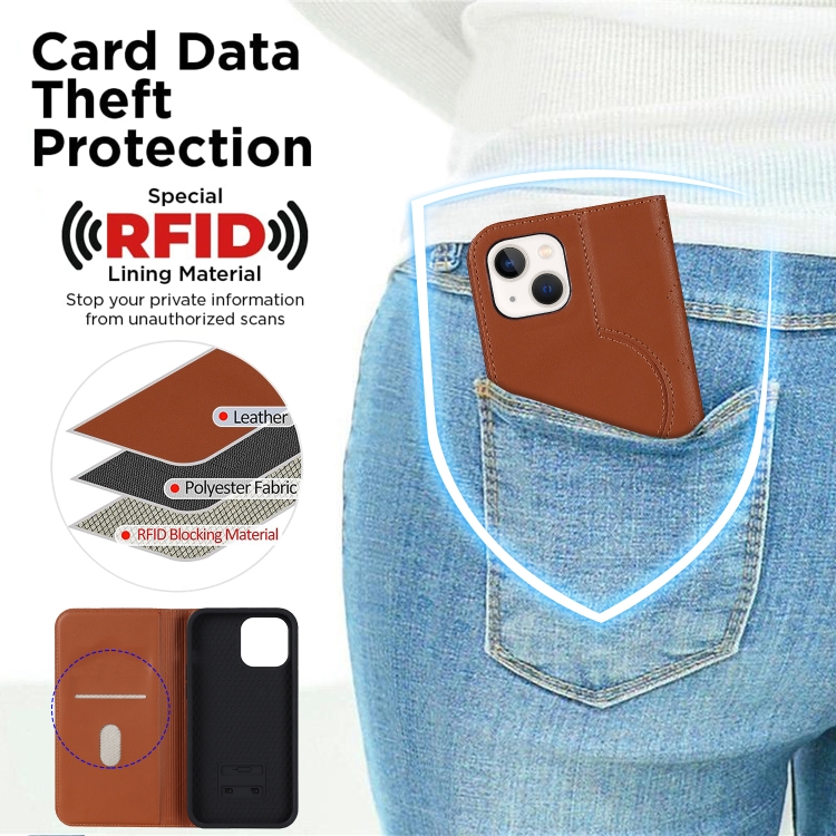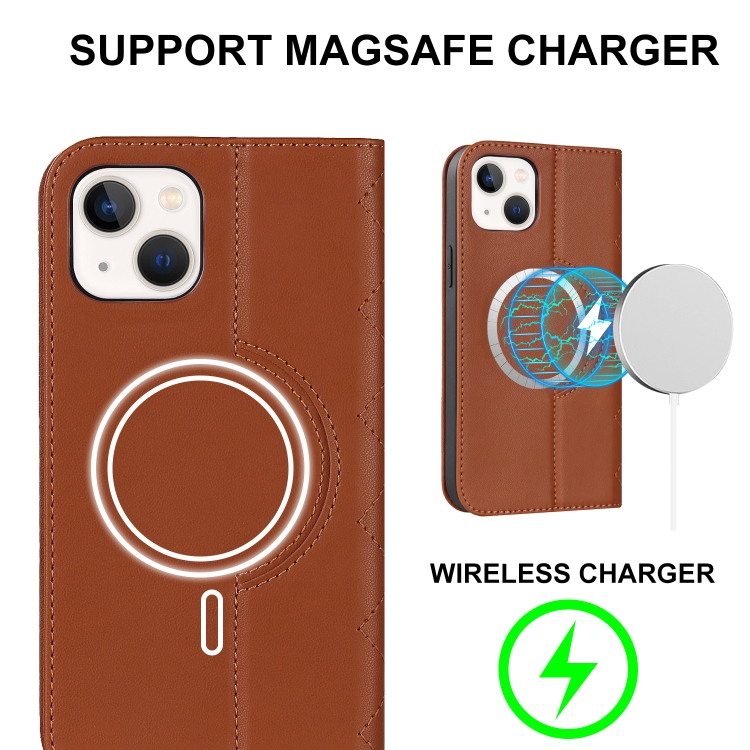 Funda para iPhone 13 Mini Rhombic Magsafe Rfid Antirrobo de Cuero (Marrón)