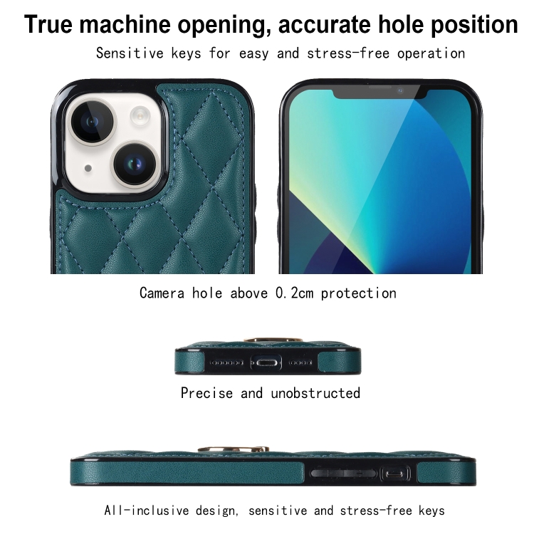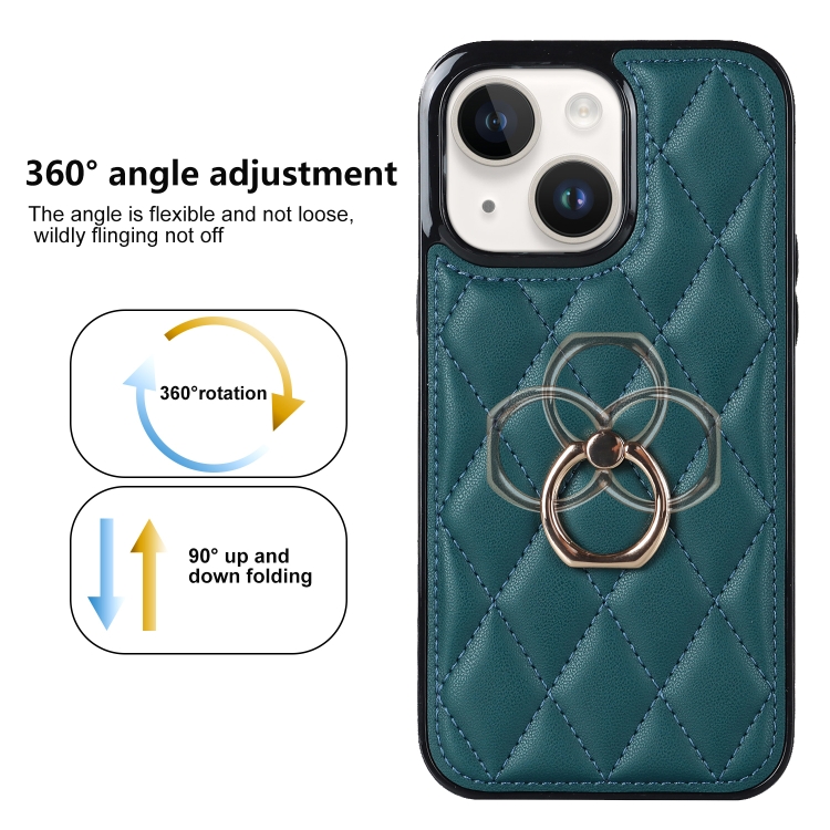 Funda para teléfono iPhone 13 Mini Rhombic PU Cuero con Soporte para Anillo (Verde)