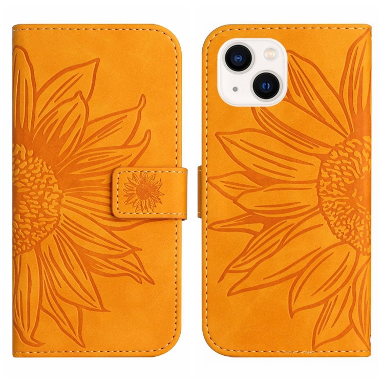 Funda para teléfono iPhone 13 Mini Skin Feel Sun Flower Pattern Flip de Cuero con Cordón (Amarillo)