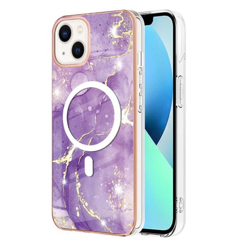 Caja de teléfono para iPhone 13 Patrón de Mármol Imd Magsafe TPU de Doble Cara (Púrpura)