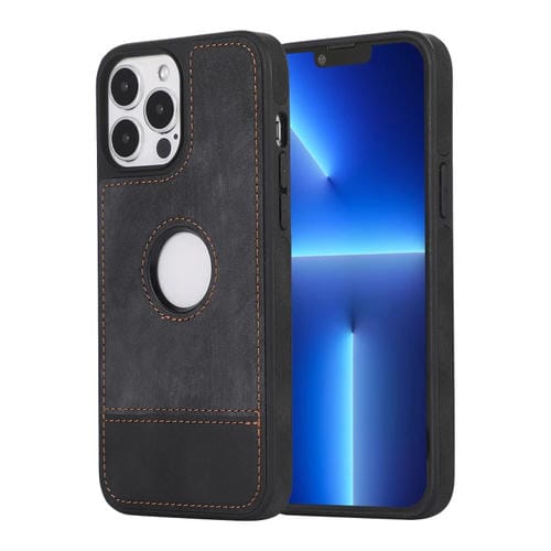 For iPhone 13 Pro Splicing Stitching PU Phone Case with Hollow Cutout (Black)