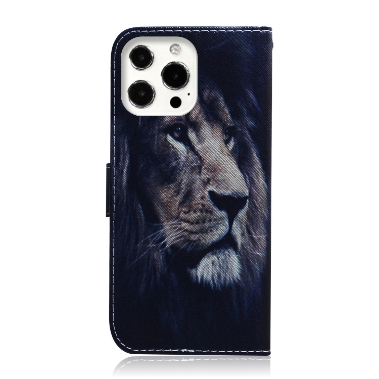 Estuche de Cuero para iPhone 13 Pro con Tapa Horizontal, Soporte, Ranuras para Tarjetas y Billetera (León)