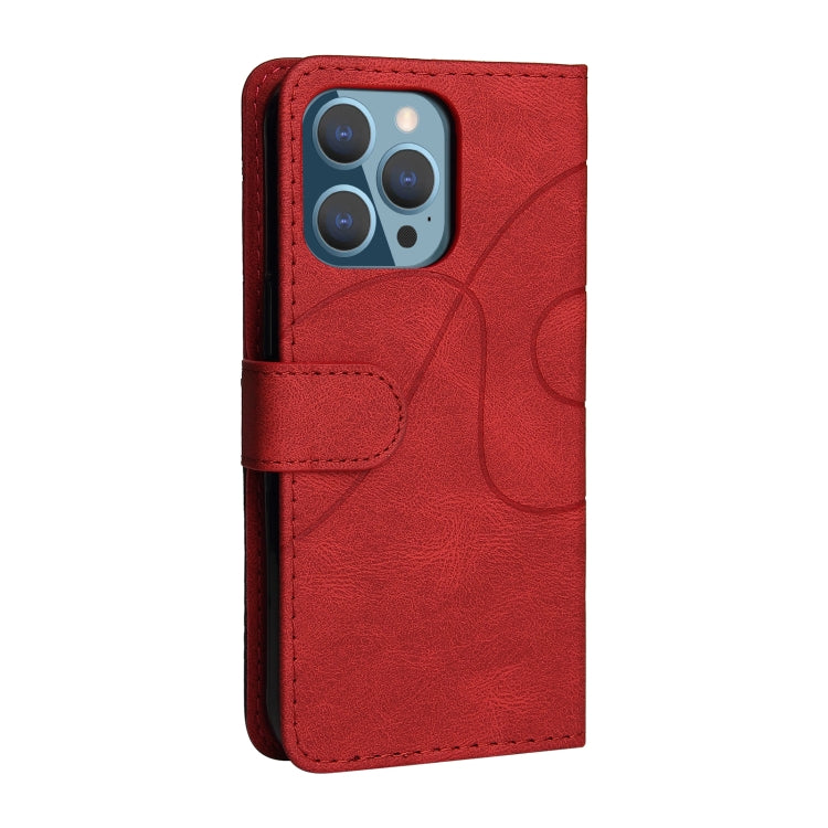 Estuche para iPhone 13 Pro Cuero de PU Tapa Horizontal Empalme Dos Colores Soporte Ranuras Tarjetas Billetera (Rojo)