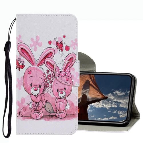 Estuche de Teléfono Cuero iPhone 13 Pro Patrón Dibujo Coloreado (Lindo Conejo)