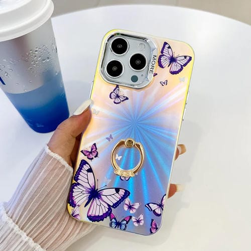 Estuche para teléfono iPhone 13 Pro con soporte anillo mariposa láser galvanoplastia
