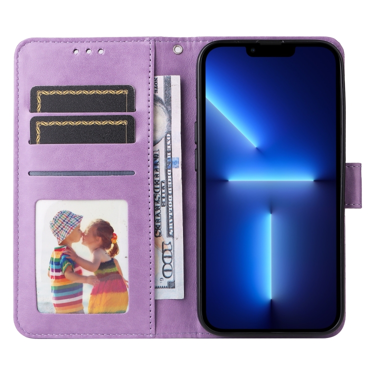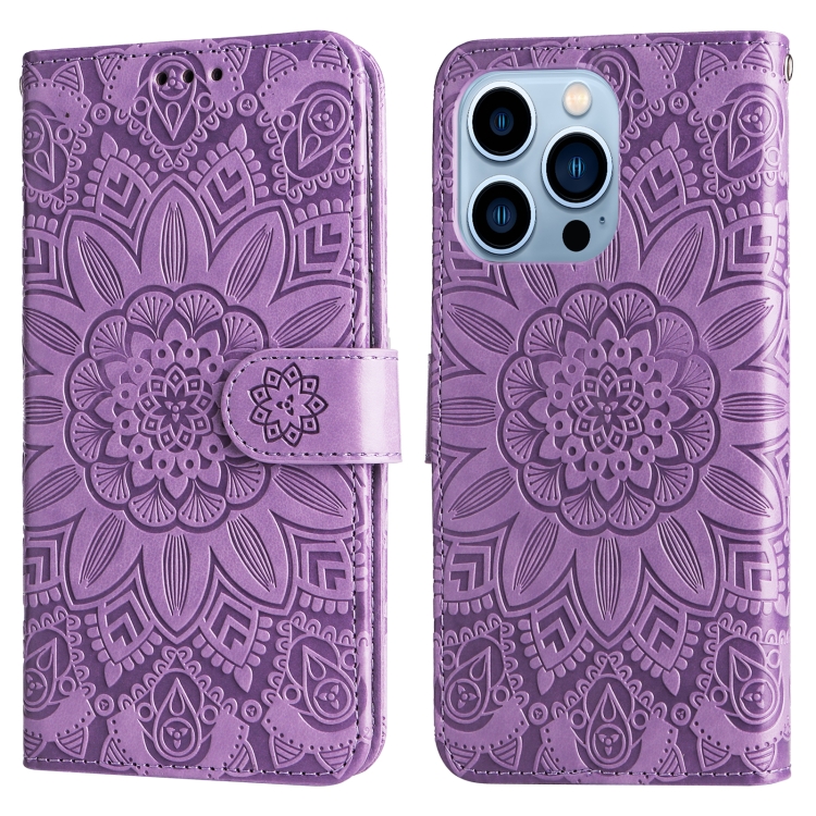 Estuche para Teléfono iPhone 13 Pro Cuero Estampado Girasol En Relieve (Púrpura)