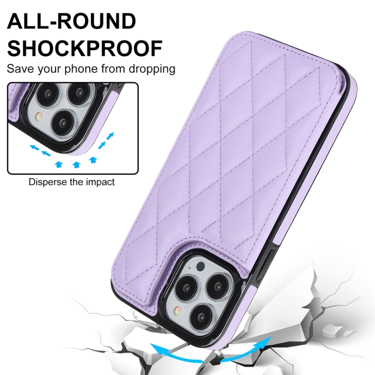 Estuche para Teléfono iPhone 13 Pro Cuero Pu Rombal con Doble Hebilla (Púrpura)