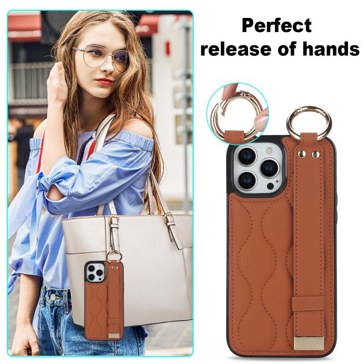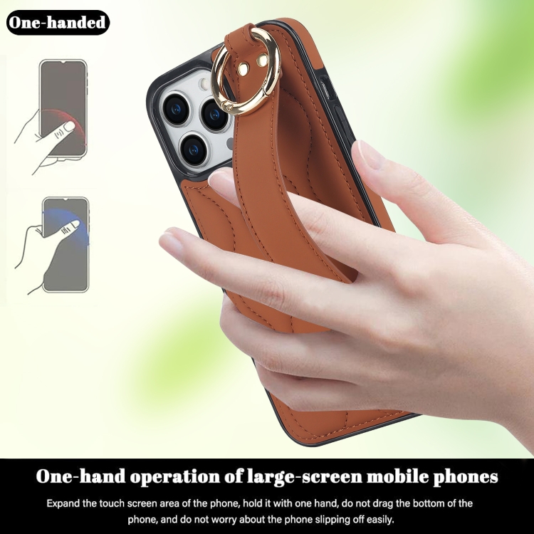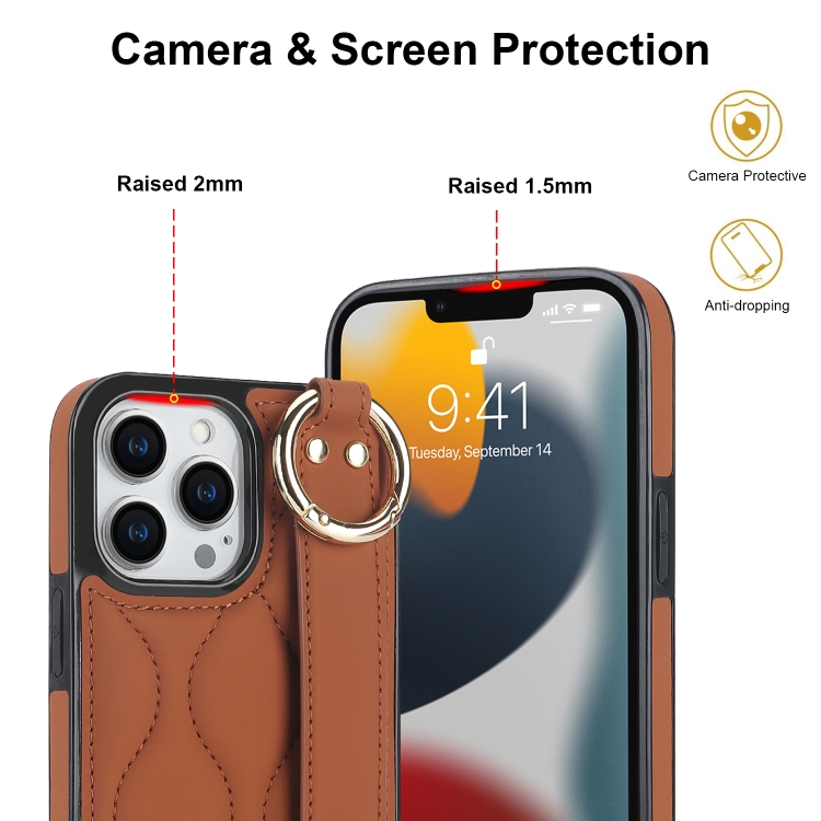 Funda para iPhone 13 Pro Antideslizante de PU con Anillo y Muñequera (Marrón)