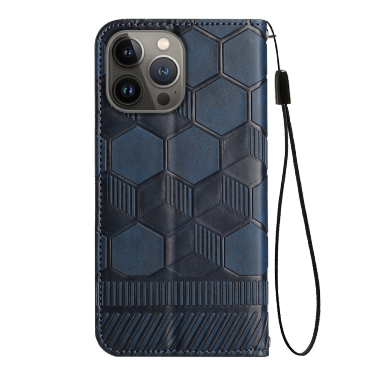 Funda de Teléfono para iPhone 13 Pro con Tapa de Cuero Magnético y Textura de Fútbol (Azul Oscuro)