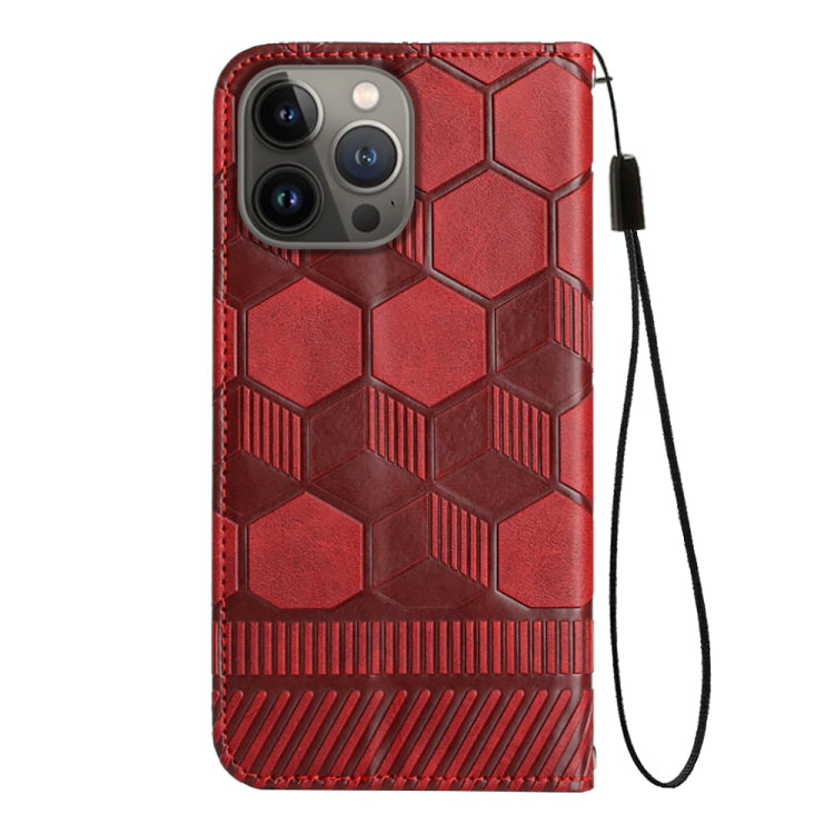 Funda de Teléfono para iPhone 13 Pro con Tapa de Cuero Magnético y Textura de Fútbol (Rojo)