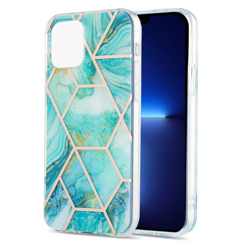 Estuche para iPhone 13 Pro Galvanoplastia Empalme Patrón Flor Mármol TPU Doble Cara (Azul)