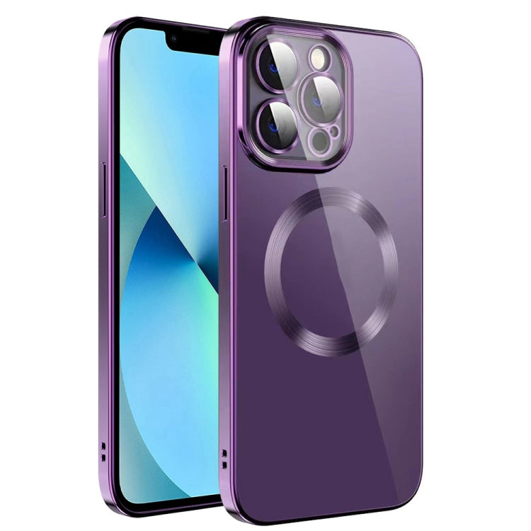 Funda para Teléfono iPhone 13 Pro Galvanoplastia Magsafe TPU con Película de Lente (Púrpura Oscuro)
