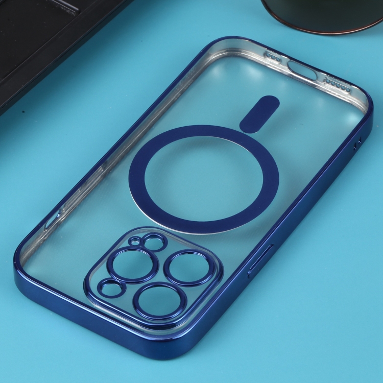 For iPhone 13 Pro MagSafe Electroplating Straight TPU Phone Case(Dark Blue)